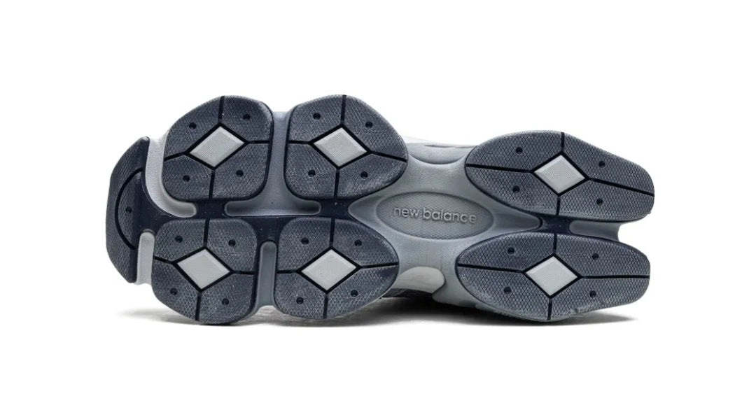 The New Balance 9060 features an innovation-driven design – in a grey and blue colourway. This pair reinterprets familiar elements from the classic 99X models with a warped sensibility inspired by the proudly futuristic and visible tech aesthetic of the 2000s era. It comes with wavy lines and scaled-up proportions and is propped on a sculpted chambered midsole that places an exaggerated emphasis on the familiar cushioning platforms of ABZORB and SBS.